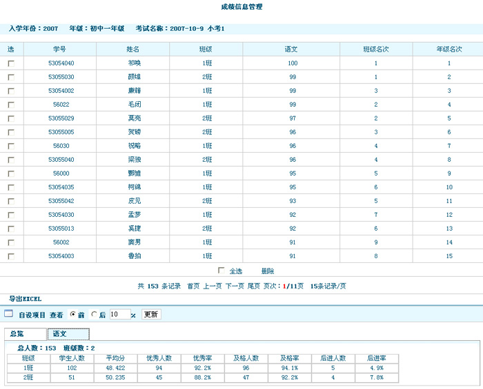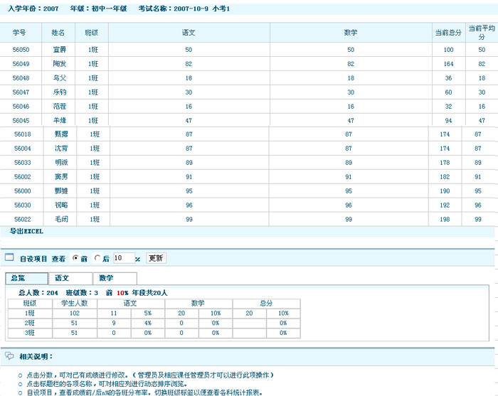 学校用模块主要用于中小学成绩管理、具有成绩输入、各班成绩汇总分析、成绩打印、成绩综合排名等功能。